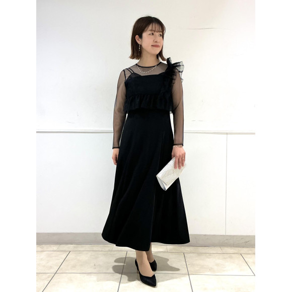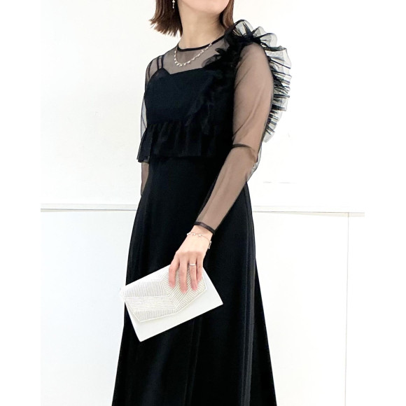 아시메 프릴비스체×롱 슬리브 플레어 드레스 2점 세트